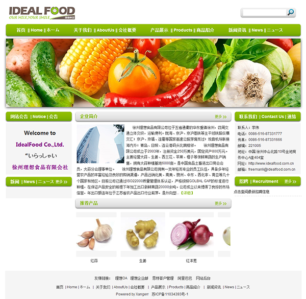 2014年5月,屻杰設計團隊圓滿完成徐州理想食品有限公司網(wǎng)站重建工作,將網(wǎng)站設定為中英日語同時對照顯示,開放后臺管理權限方便維護和發(fā)布信息,豐富了網(wǎng)站的產(chǎn)品圖片信息,有效提高了公司網(wǎng)站的點擊率和訪問量。